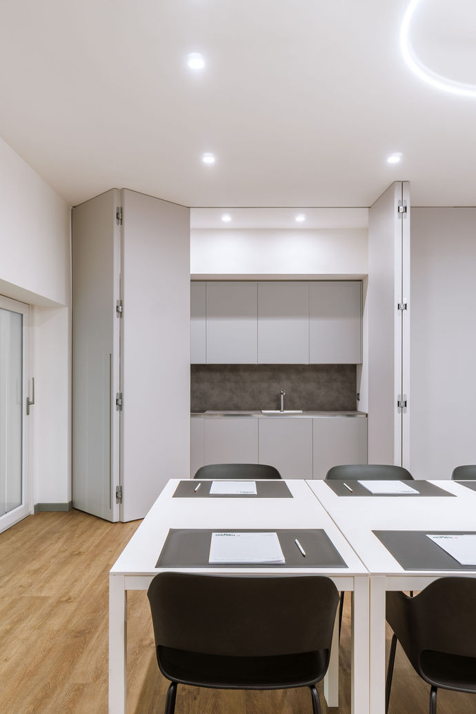 Il progetto di “Edilporte Headquarter” riguarda la ristrutturazione di interni per l’azienda di serramenti Edilporte situata a Quinzano d’Oglio (BS). L’obiettivo dell’intervento è quello di riorganizzare gli spazi in modo più studiato e coerente con le funzioni che questo tipo di attività richiede. Le nuove partiture interne si adattano alle mutate esigenze della società e creano uno spazio di lavoro funzionale in modo tale da promuovere la creatività e la produttività. Le ripartizioni interne, sia in cartongesso che in vetro, scandiscono nuovi ambienti di lavoro improntati a ricavare spazi individuali come gli uffici direzionali, la sala riunioni per meeting, l’area operativa e la sala espositiva per i modelli dei serramenti. L’esito dell’intervento è un ambiente totalmente rinnovato, improntato su spazi aperti e di condivisione con combinazioni di colori neutri a farne da sfondo.