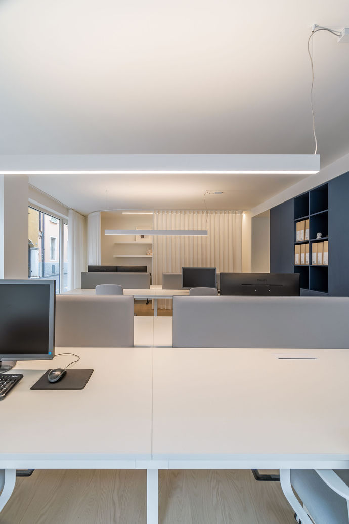 Il progetto nasce come un atto fondativo: uno spazio che rende visibile e abitabile la nostra idea di architettura. Non è solo il luogo in cui lavoriamo, ma l’ambiente in cui il pensiero progettuale prende forma, si chiarisce e si confronta. Ogni scelta traduce in architettura i principi che guidano il nostro lavoro, offrendo un’esperienza diretta e riconoscibile della nostra visione. Lo studio si configura come uno spazio aperto al dialogo, dove funzione e rappresentazione convivono in equilibrio. Volumi, luce e materia costruiscono una narrazione coerente, capace di esprimere metodo e posizione culturale. L’architettura diventa così un dispositivo che genera significato e restituisce, con discrezione, il nostro modo di interpretare il progetto. Il rapporto con il cliente è posto al centro dell’esperienza spaziale. Lo studio è pensato come un luogo di incontro e condivisione, in cui il dialogo si sviluppa in modo naturale grazie a una sequenza di ambienti fluidi e permeabili: attraversarlo significa entrare nel processo progettuale e comprenderne il valore attraverso proporzioni, atmosfera e cura del dettaglio. Gli spazi comuni invitano allo scambio e rendono il confronto parte integrante del progetto; materia e luce definiscono l’identità dell’ambiente. I materiali, scelti per autenticità e qualità sensoriale, instaurano un rapporto diretto con chi li vive, acquisendo profondità e carattere nel tempo, senza ostentazione. La luce naturale, elemento generatore del progetto, modella i volumi e accompagna la percezione degli spazi, segnando il ritmo quotidiano del lavoro. Gli arredi, essenziali e calibrati, completano l’insieme lasciando allo spazio il ruolo principale. In questo studio si concentra una visione dell’architettura come esperienza e relazione, prima ancora che forma costruita. Un luogo che esprime con coerenza la nostra identità e i valori che guidano la pratica: attenzione al contesto, centralità delle persone, rigore progettuale e sensibilità materica. Uno spazio che racconta un’idea di architettura capace di generare significato, costruire relazioni e affermare, in modo misurato ma deciso, una posizione culturale chiara e riconoscibile.